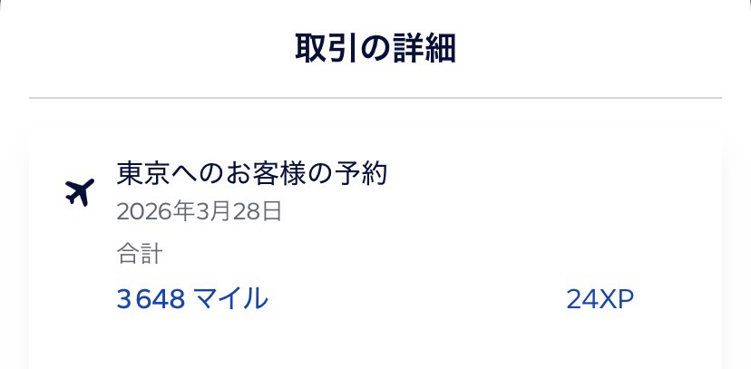 さらにアカウント上でも、往路分のマイルとXPがしっかり反映されていました。